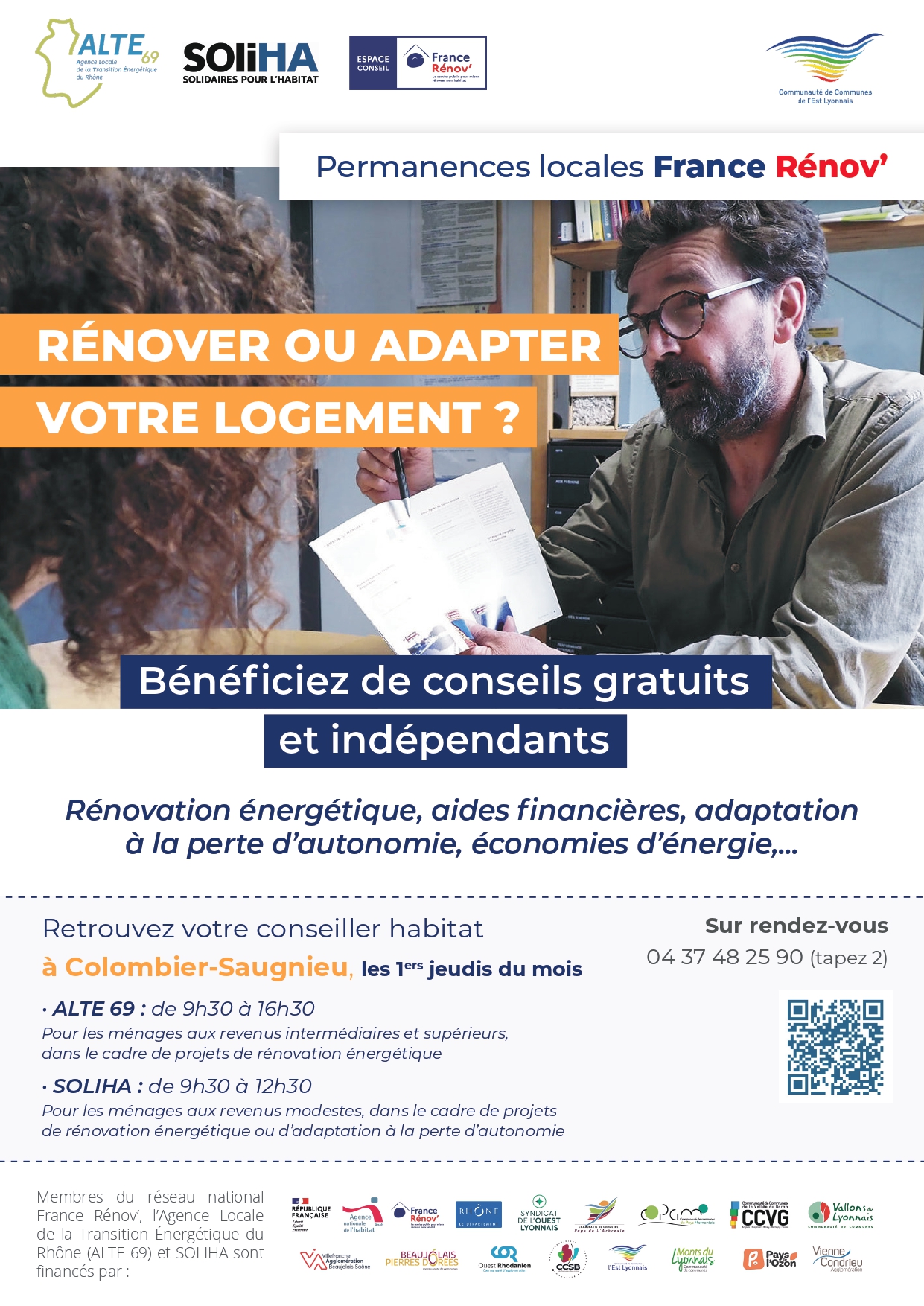 - ALTE 69 : de 9h30 à 16h30, ménages aux revenus intermédiaires et supérieurs, dans le cadre de projets de rénovation énergétique.