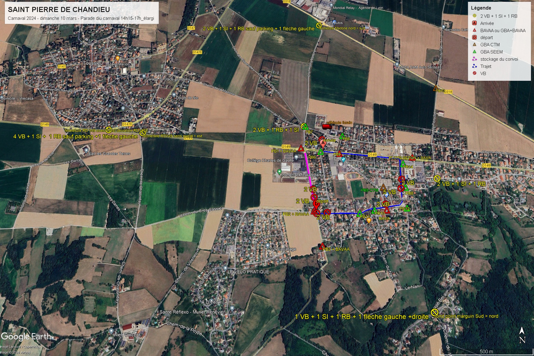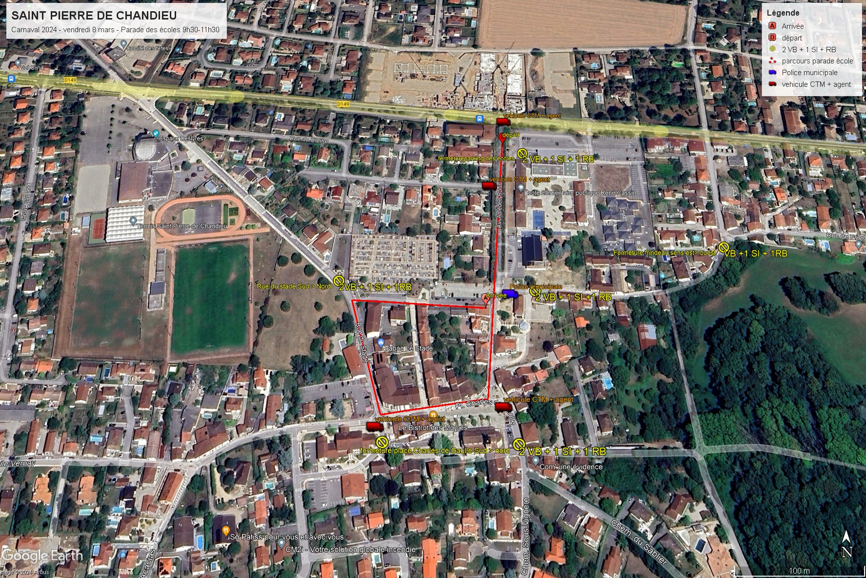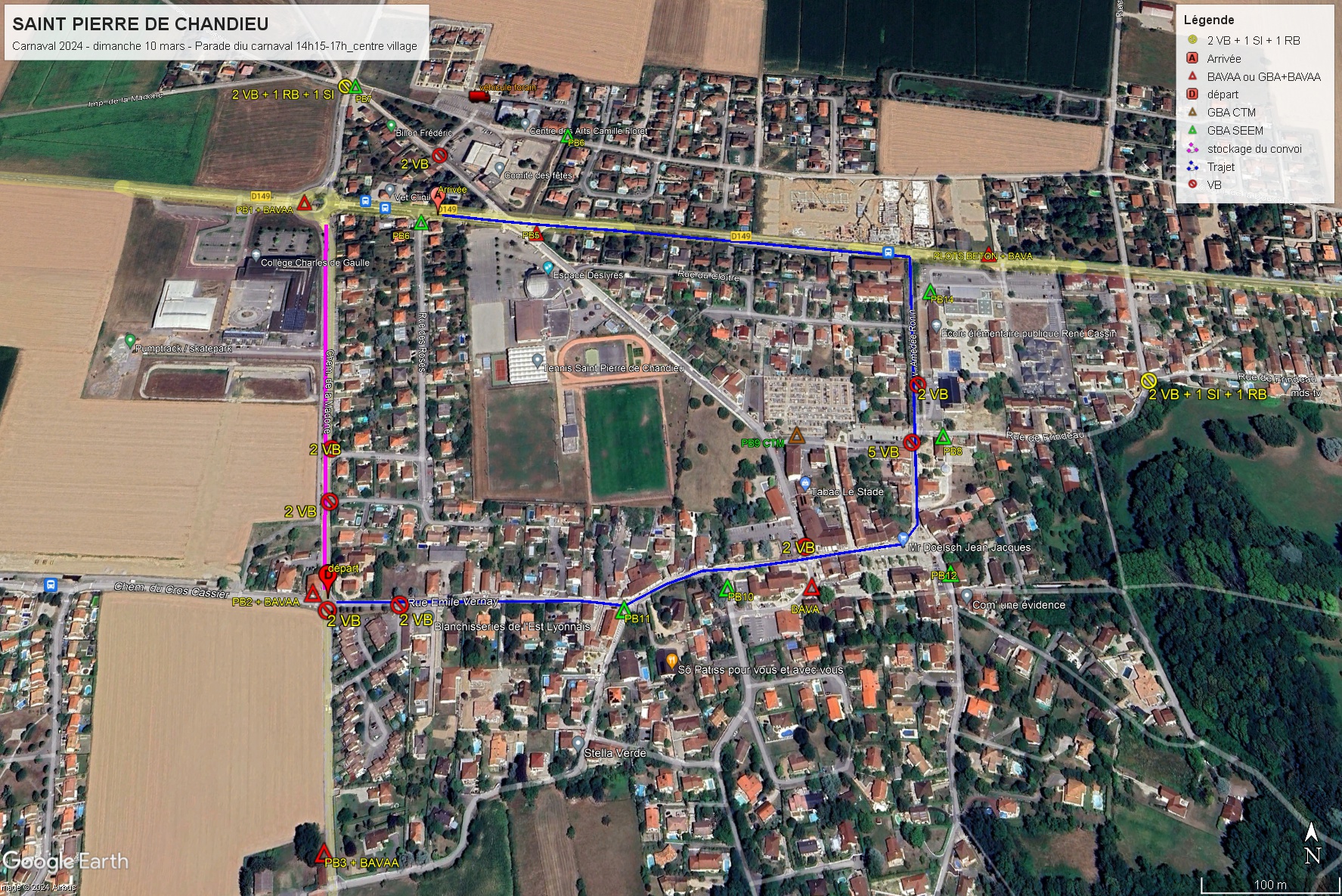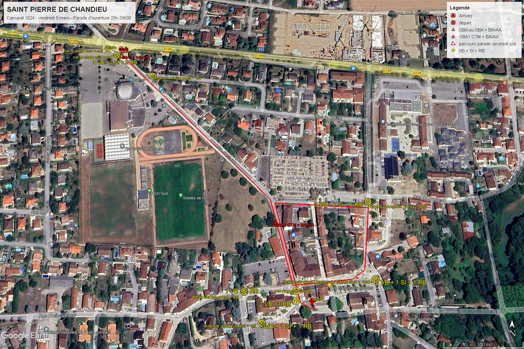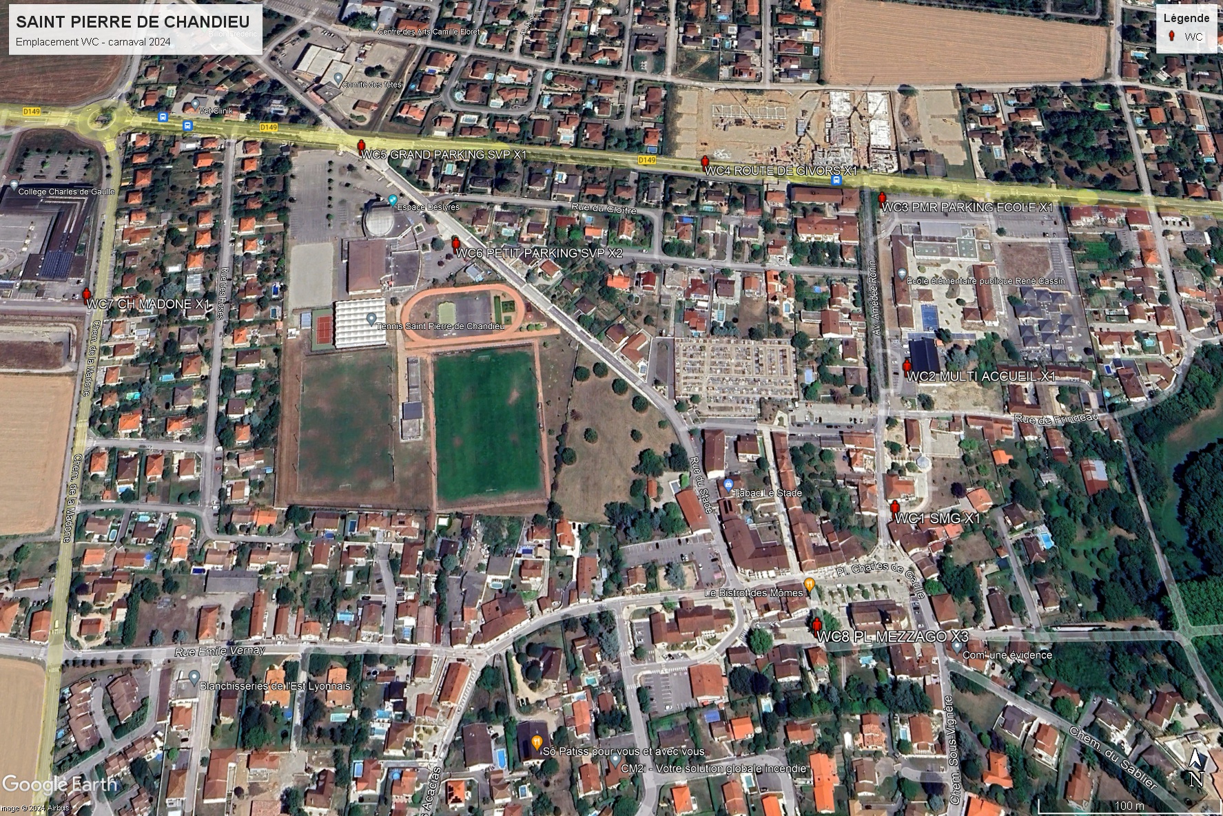 Mise en place Chemin de la Madone (sens nord/sud) entre les jardins de Colette et le collège. → Rue Emile Vernay → Place Charles de Gaulle → Rue Amédée Ronin → Route de Givors.