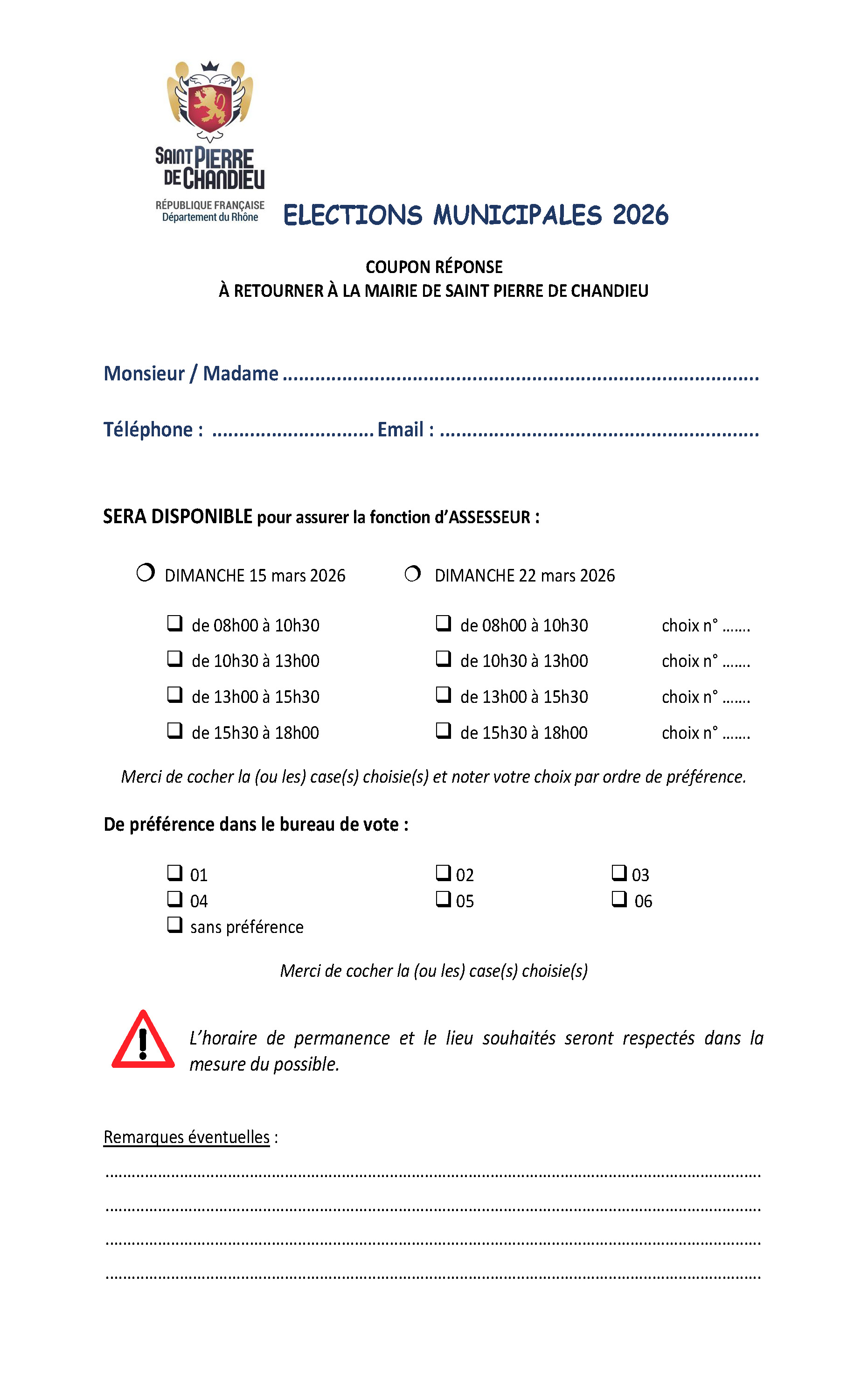 La commune de Saint Pierre de Chandieu fait appel aux volontaires pour tenir les bureaux lors des deux dimanches électoraux.